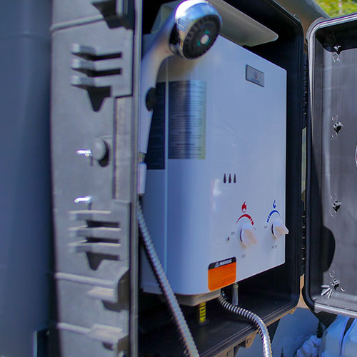 Doubles the capacity of propane by adding a 2nd tank, positioned side by side. Each tank is rated to run the furnace for 35 straight hours. Most people are confortable with using the furnace 1-3 hours per day in cold climates, based on conditions.